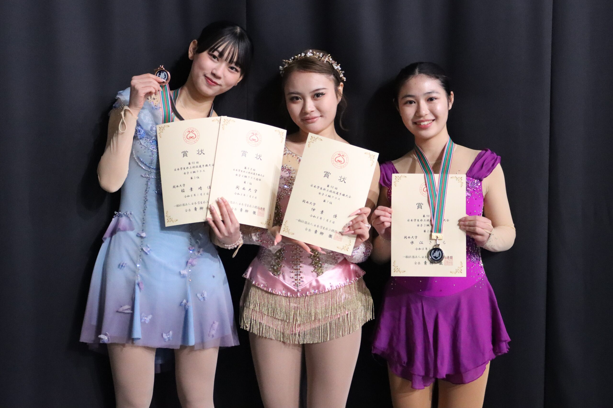 ついに学生最高峰の大会が幕を開けた。今年は東京都で開催された日本学生氷上競技選手権大会(インカレ)。初日は女子3級に1名、女子4級に2名が出場した。女子3級では水江さくら(政策1)が初出場ながら準優勝に輝く。女子4級では稲葉晴佳(社3)が2年連続の表彰台となる3位、伊葉優(商4)が7位に。3名全員が入賞を果たし、団体でも表彰台に上った。